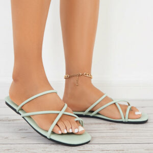 Put your toe through the criss-cross straps, this womens square toe flat slide sandal will not fall off your feet, perfect touch of femininity to your warm weather wardrobe.