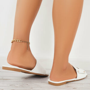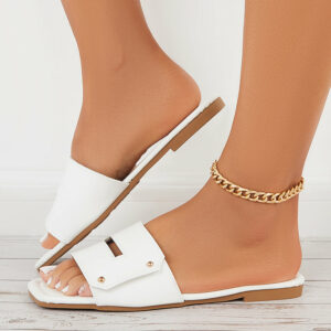 This flat slide sandals feature square open toe, metal rivet design is simple but exudes an effortless sense of style, which can lend a simple yet elegant vibe to any outfit.