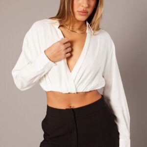 Be the first to review “White Twist Front Cropped Relaxed Collared Shirt” Cancel reply